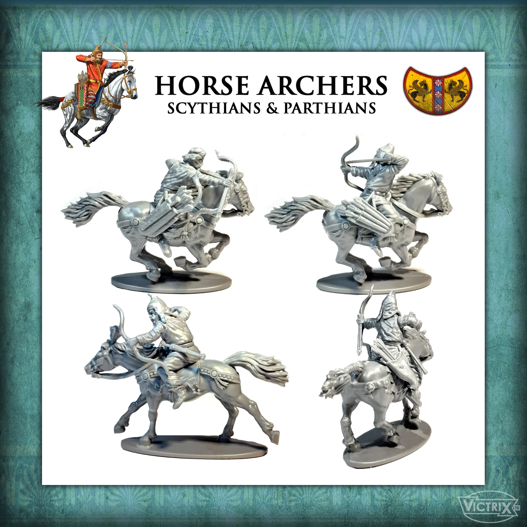 Este set incluye 12 arqueros a caballo. Puede usarse para escitas y partos, y también como jinetes sármatas. Estos ejércitos son independientes, pero también lucharon como aliados de persas, griegos y macedonios.