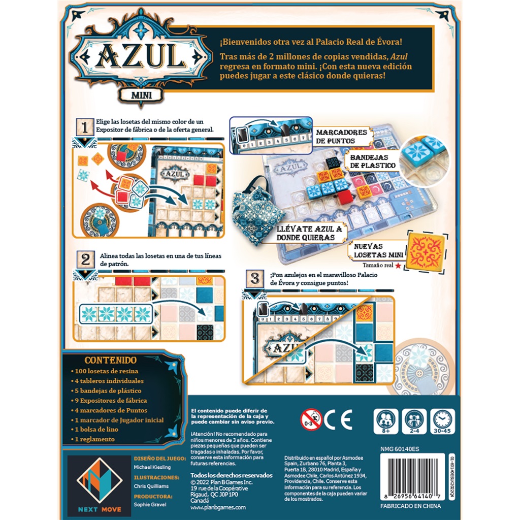 Tras más de 2 millones de copias vendidas, Azul regresa en formato mini. ¡Con esta nueva edición puedes jugar a este clásico donde quieras!