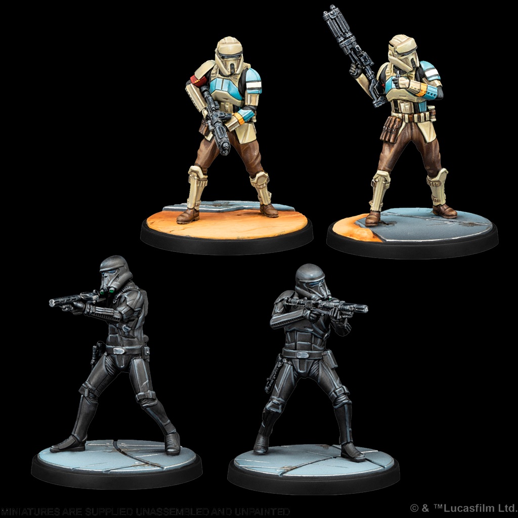 4 cartas de postura de unidad, 4 cartas de órdenes de unidad, 4 cartas de perfil de unidad, 6 miniaturas