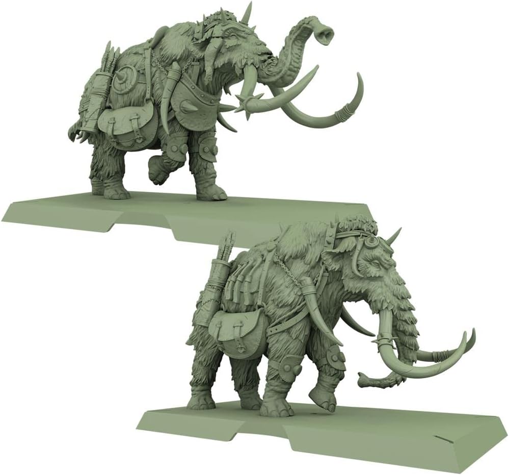 Pese a que no quedan muchos mamuts en el mundo, el Pueblo Libre y sus aliados los gigantes han adiestrado algunos para convertirlos en colosales máquinas de destrucción que arrasan el campo de batalla. Si bien su tamaño los convierte en objetivos fáciles, su grueso y lanudo pellejo les permite ignorar golpes que serían letales para otras criaturas. Los mamuts se valen de sus colmillos, su trompa y sus patas para atacar