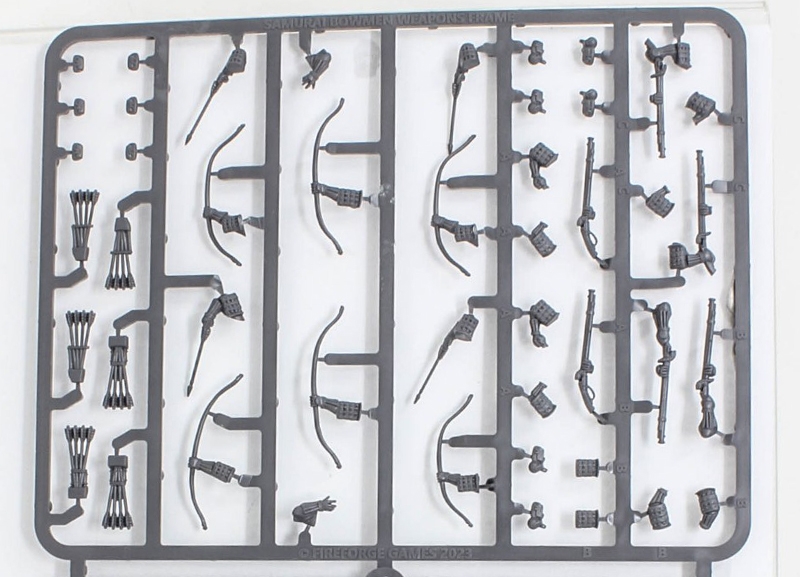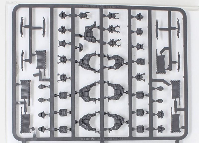 Esta caja te permite montar 24 samuráis de disparo armados con yumi o teppo de la marca Fireforge Games