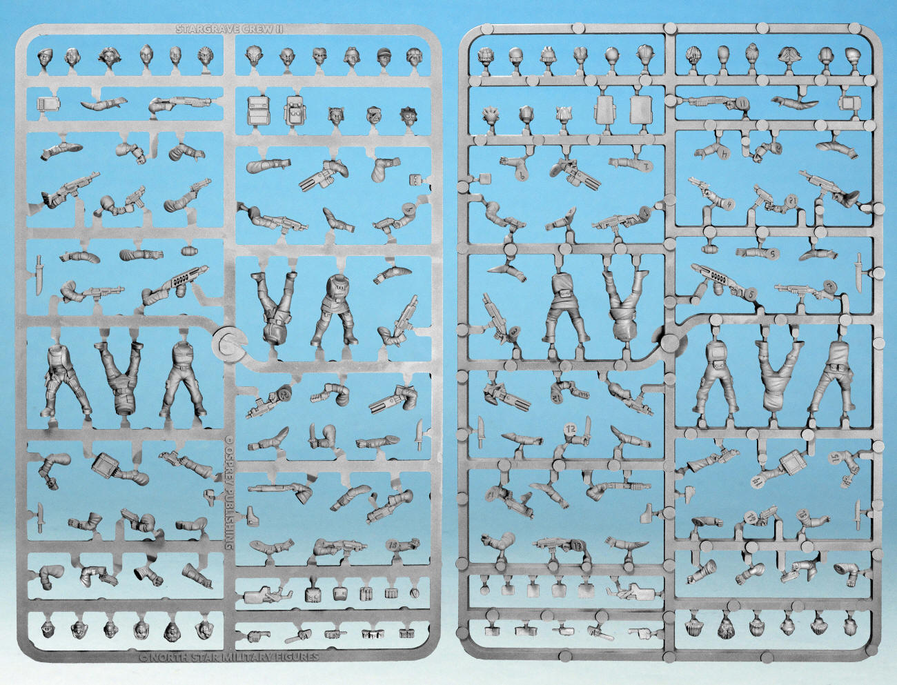 Esta caja ofrece suficientes piezas para construir 20 personajes femeninos con equipo ligero para Stargrave, ideales para usar en tripulaciones independientes o como miembros de las flotas piratas que los persiguen. Si bien este kit incluye diversas armas y una combinación de cabezas alienígenas y humanas, se puede lograr aún más variedad combinando componentes de otras cajas de Stargrave con personajes femeninos.